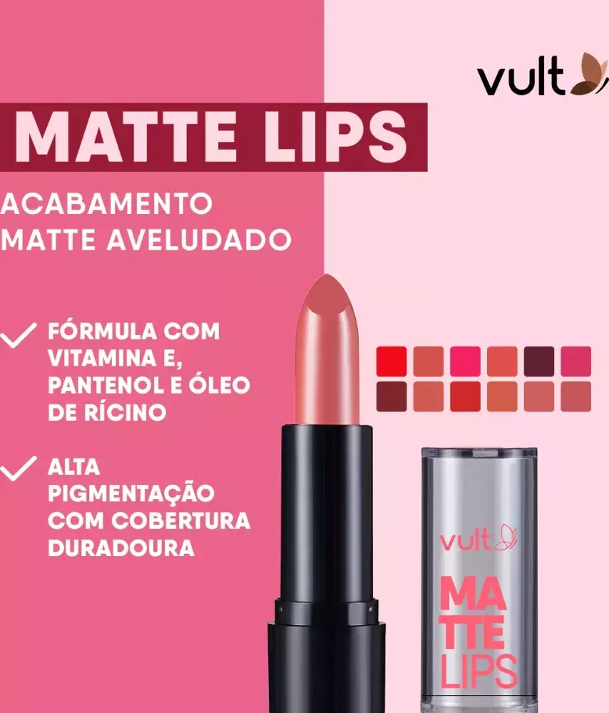OBatom Matte Lipsveio para deixar seus lábios daquele jeito que você ama: destacados, coloridos e com um efeito mate. Este é um daqueles tipos de batom que, mesmo com efeito fosco, mantém os lábios hidratados. Isso graças à sua fórmula rica em Vitamina E, Pantenol e Óleo de Rícino. Estes ativos repõem a umidade perdida, nutrem a pele e ainda previnem o envelhecimento precoce.