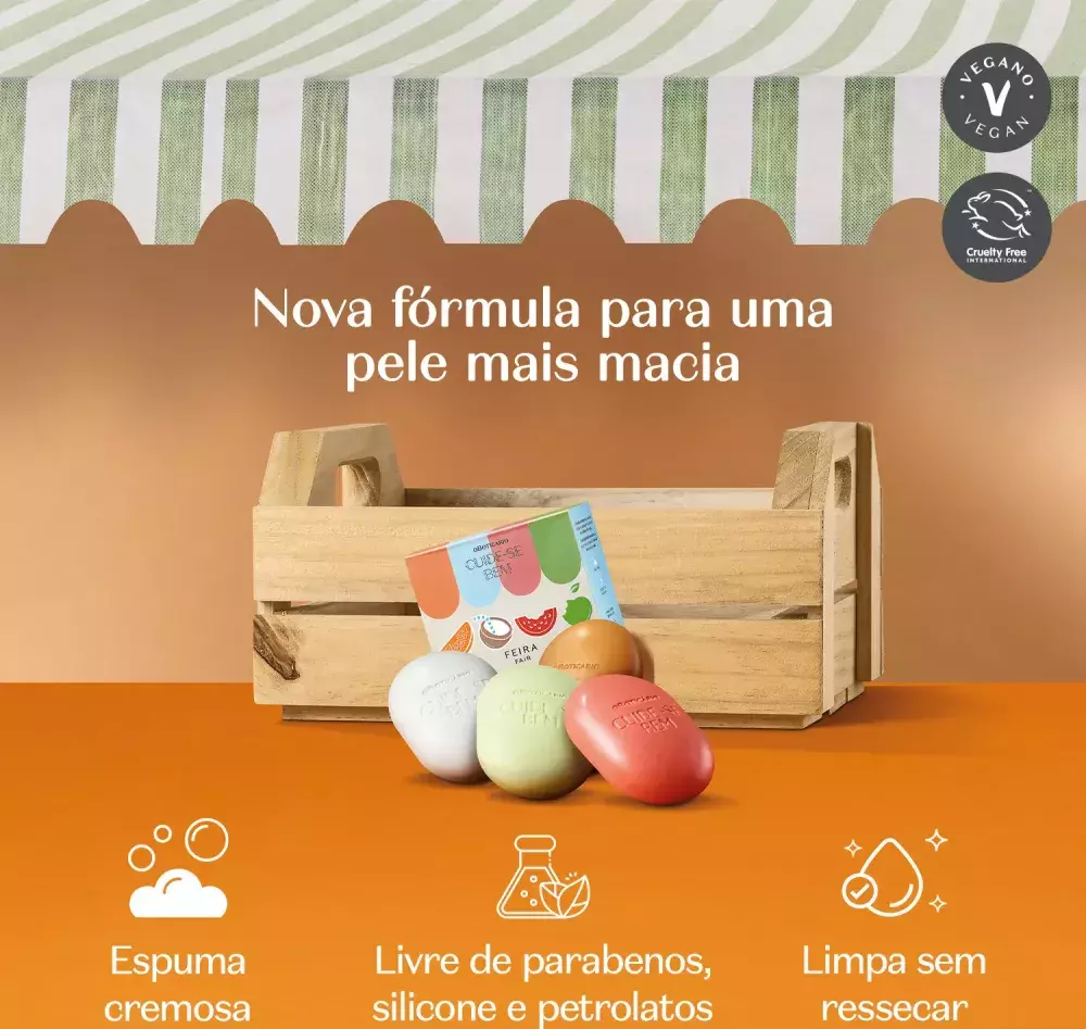 A linhaCuide-se Bem Feiratraz uma variedade de frutas, cores e texturas para você aproveitar uma feira deliciosa e100% vegana. Com diversas fragrâncias e nova fórmula mais hidratante, você tem uma mistura de deliciosas vantagens.
