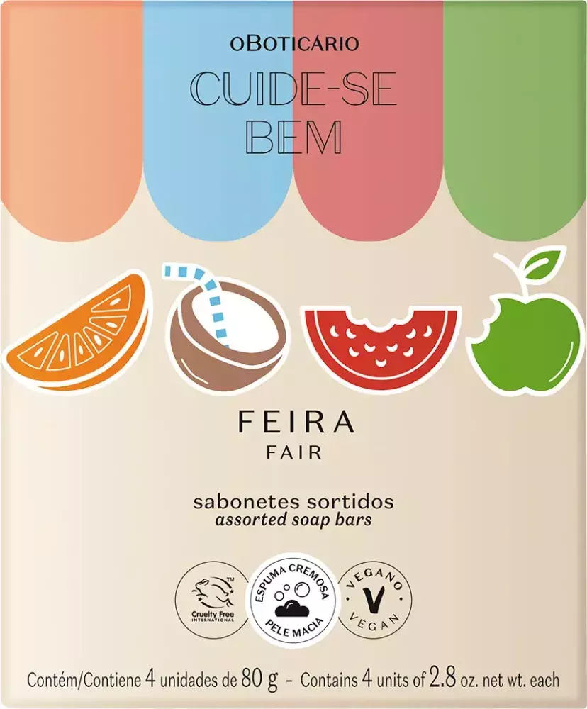Para uma rotina mais prática, leve e sustentável, osSabonetes em Barra Sortidos Cuide-se Bem Feiratrazem a diversidade de uma feira para você se cuidar!
