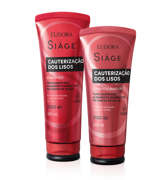 OCombo Siàge Cauterização dos Lisos: Shampoo + Condicionadortrata os danospós e pré alisamento, sem deixar a hidratação de lado.