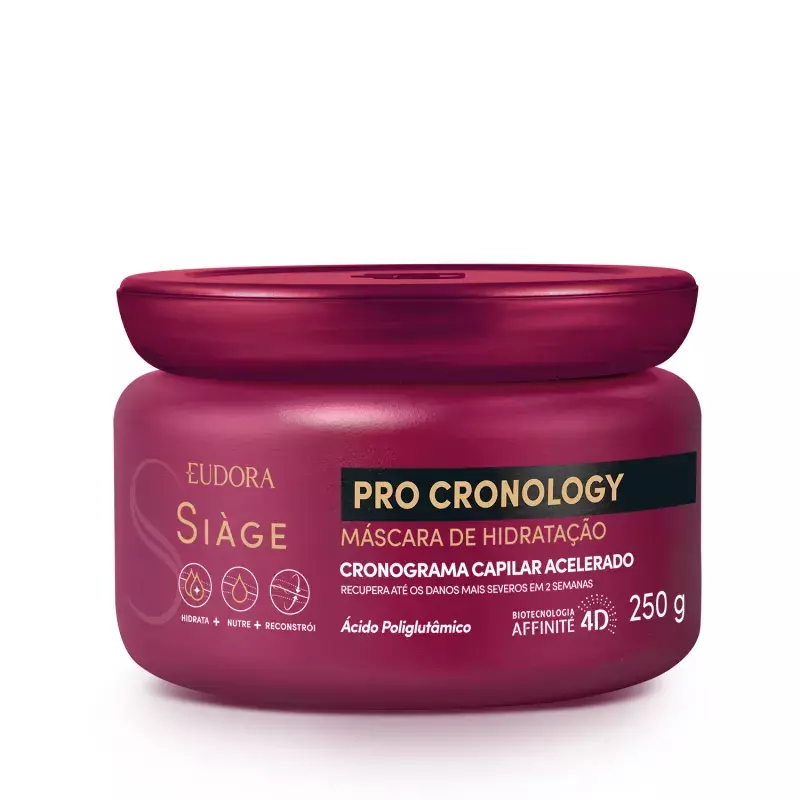 AMáscara de Hidratação Siàge Pro Cronologypossuiação duradoura com reposição da massa capilar,selagem imediata das pontase ultra hidratação.