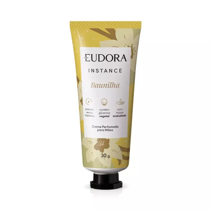 O Creme Perfumado para MãosInstance Baunilhadeixa a sua mãomacia, perfumadae profundamentehidratadasem danificar o brilho do seu esmalte, ideal para um dia a dia com mais autocuidado.