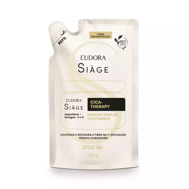 O Refil daMáscara Capilar Siàge Cica Therapyrealiza umacicatrização imediatados fios que repara os danos, repõe nutrientes essenciais e protege a fibra capilar, garantindo cabelos fortes e hidratados desde a 1ª aplicação. A tecnologia deSiàge Cica Therapytraz uma terapia capilar duradoura para a cicatrização das áreas danificadas do cabelo. A cicatrização é o tratamento que recupera a saúde dos fios, devolve nutrientes essenciais e protege contra agressões diárias com os poderosos ativosEsqualano e Ômegas 3 e 6.