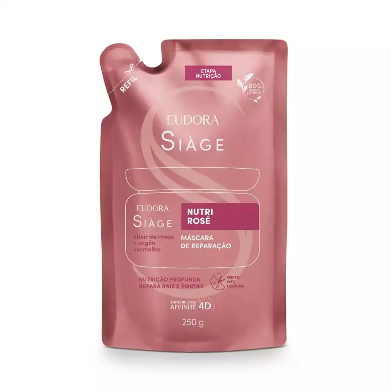 O Refil da Máscara Capilar Siàge Nutri Roséhidrata profundamente e repara as áreas fragilizadas dos fios por todo seu comprimento.