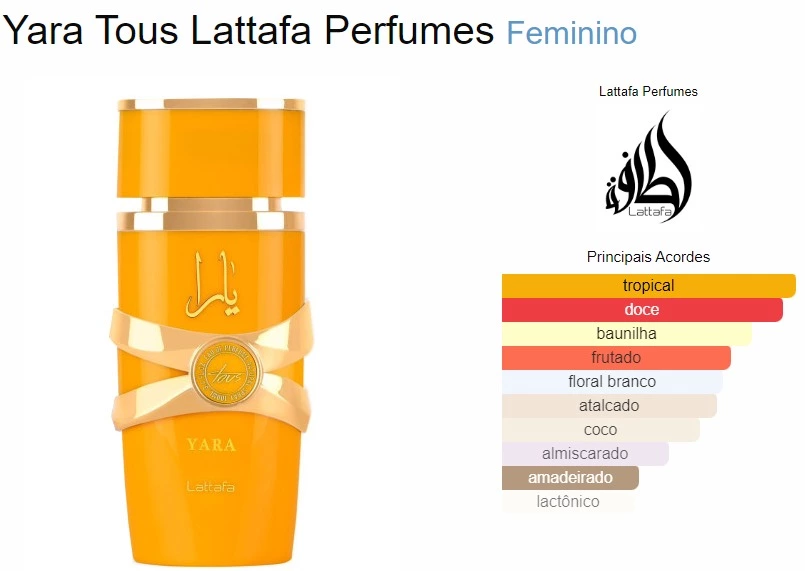 Yara Tous, da renomada marca Lattafa Perfumes, é uma fragrância feminina que se destaca como uma adição cativante ao mundo dos perfumes. Lançada em 2023, essa nova criação apresenta uma harmoniosa combinação de notas, resultando em uma experiência olfativa única e encantadora.