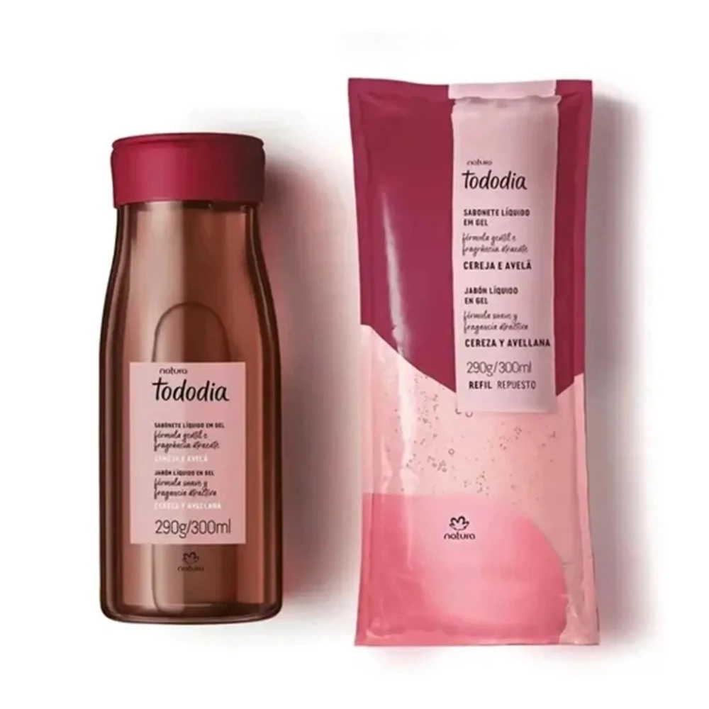 KIT NATURA SABONETE LIQUIDO CORPORAL CEREJA E AVELA (EMBALAGEM+REFIL 300ML)