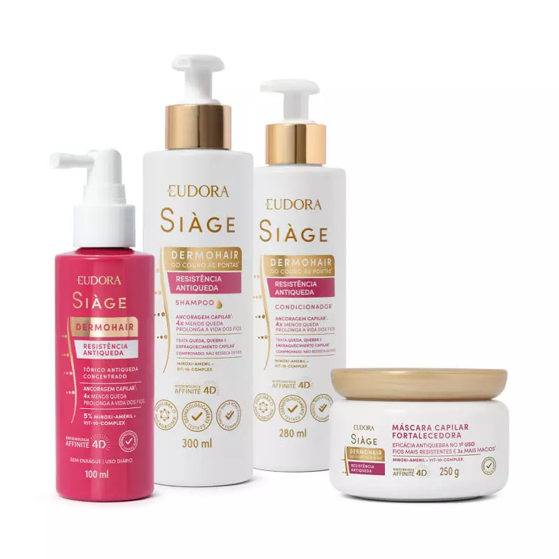 OShampoo Resistência Antiqueda Siàge Dermo Hairauxilia no tratamento completo para cabelos mais fortes, saudáveis e resistentes à queda. Sua fórmula com Minoxi-Amenil e Vit-10-Complexage diretamente na raiz do problema, promovendo uma ação multidimensional.