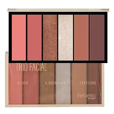 Paleta Trio Blush Iluminador e ContornoFEBELLA -Para aqueles que amam diversidade, trouxemos a paleta da Febella, contendo 6 cores você poderáfazer o contorno, iluminação e blush com apenas uma paleta, otimizando espaço e sendo super completa, contendo alta pigmentação, contorno e blush com acabamento matte.