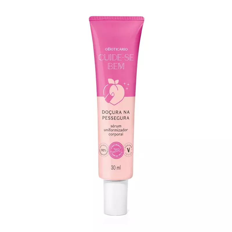 OSérum Uniformizador Corporal Cuide-se Bem Doçura na Pessegurapode ser utilizado diariamente nas áreas específicas que você gostaria de uniformizar.