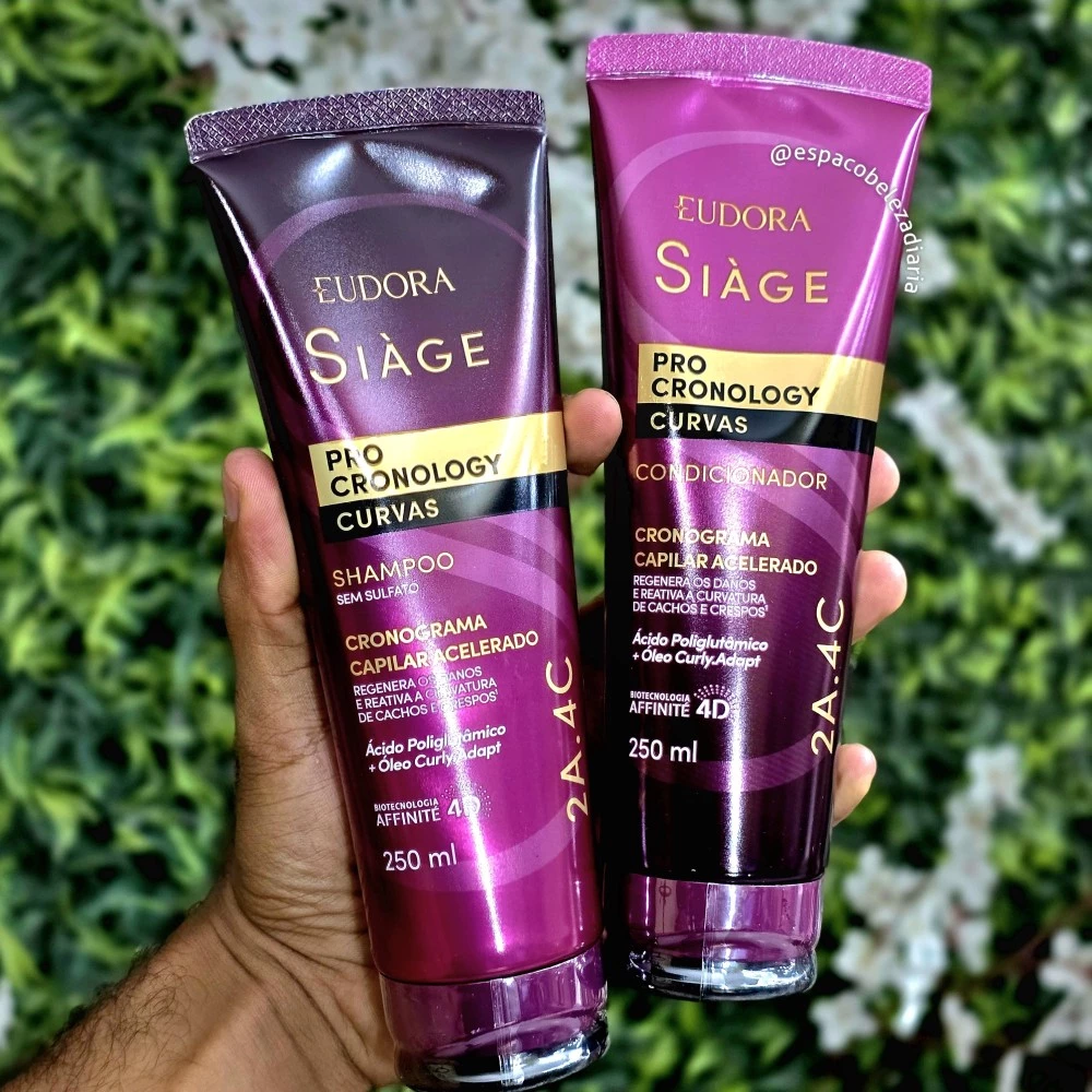 OCombo Siàge Pro Cronology Curvasreúne 2 produtos essenciais para você ter cachos e crespos saudáveis, para um tratamento completo para os fios:Shampoo e Condicionador.